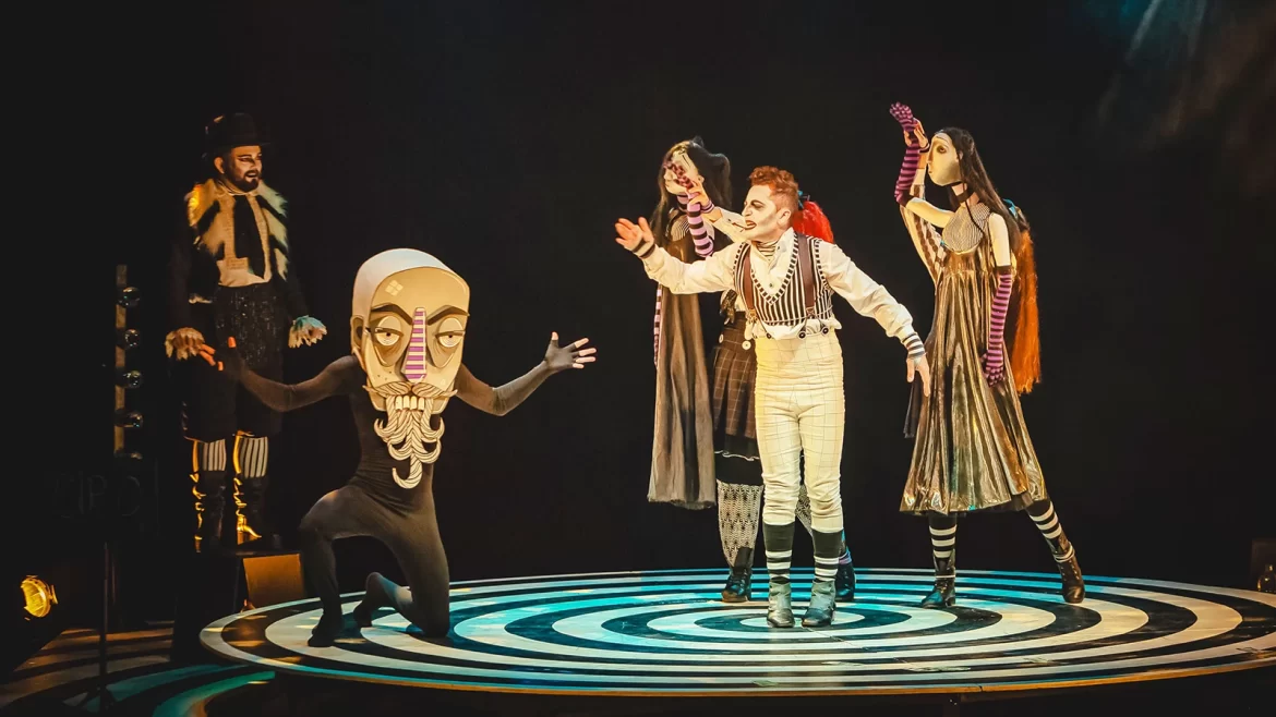 Além do virtuosismo das interpretações, o espetáculo destaca-se pela exuberância de sua produção visual, com figurinos meticulosamente elaborados, maquiagens exuberantes e um jogo de luz envolvente. A cenografia, metamorfoseando-se em um bailado mágico, adapta-se às distintas nuances da história, conferindo uma atmosfera de encantamento à jornada dos personagens, enquanto a trilha sonora ao vivo tecida pelos artistas complementa com maestria o fluxo onírico da narrativa.